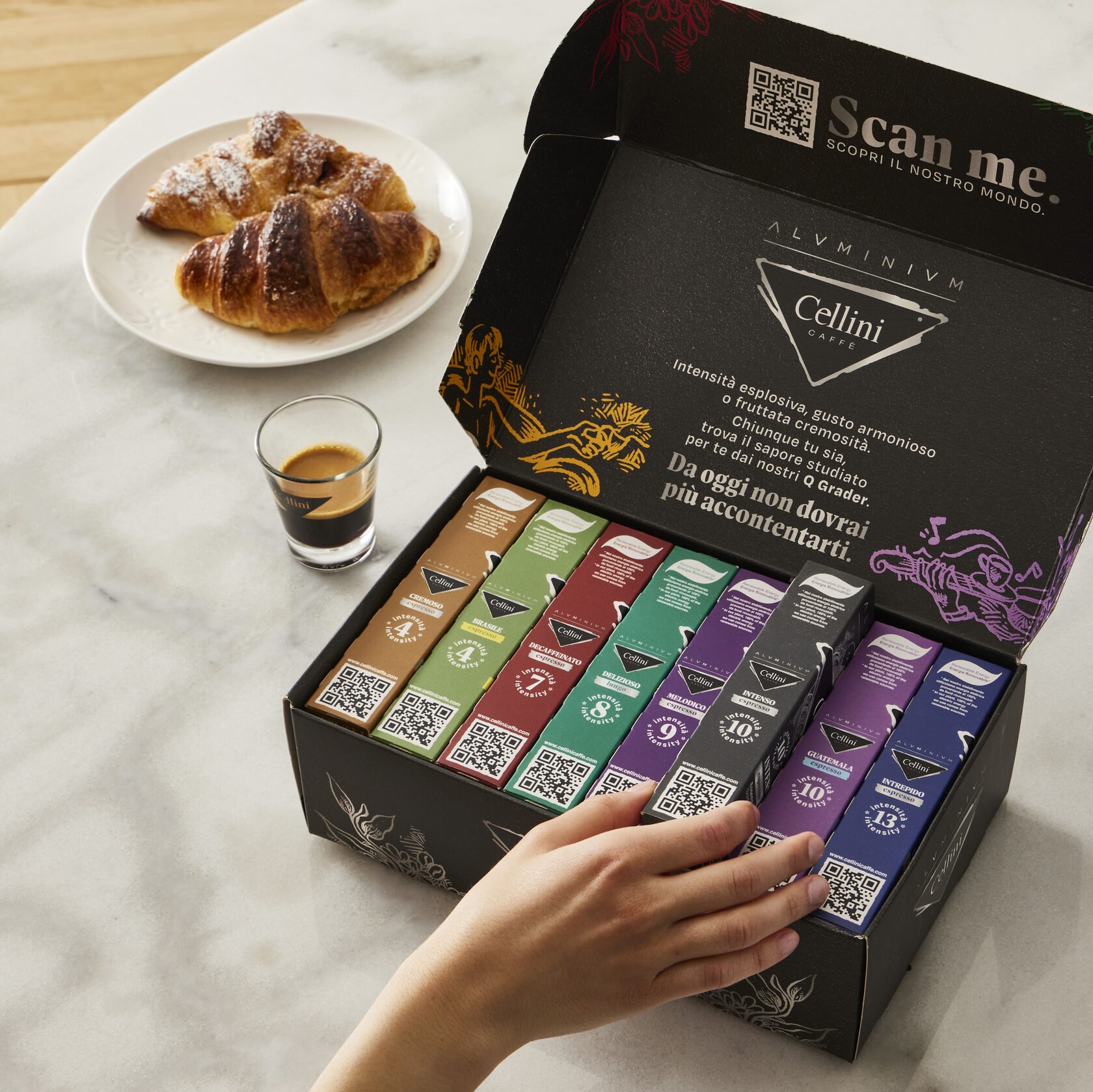 - Шоколад, орех, карамель — значит, кофе с телом и сладостью (например, Cellini Intrepido)